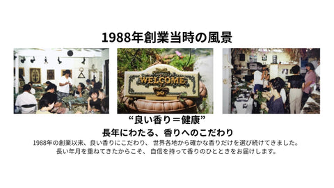 香りの専門店として1988年からさまざまな商品を通して香りのある生活を提案してきました。